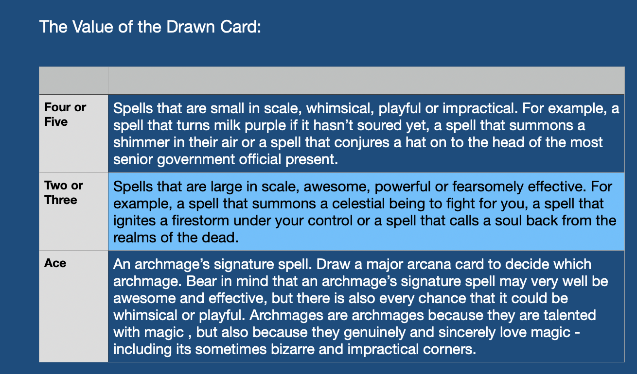 Using the tarot deck is a clever way to make the use of the SRD your own. But I also love how you went a step further and had a prompt that leads to another draw table. The Major Archana prompts are so cool. Each one unique and descriptive and touching on looking for the magic in every single aspect of life. Can't wait to play through it.