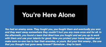 "You're here alone" is a little solo journaling game in which you take on the role of a talented and capable hero trying to take on a ghost from their past without the help of their team. But would it really be such a terrible thing to be helped? Your team isn't supposed to here, fine, but neither is your nemesis. Couldn't you let yourself accept help from the one against the other? Do you really have to do this alone?